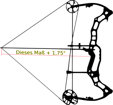 Hierbei wird erst die echte Auszugslänge (DLPP = Draw Length to Privot Point) gemessen, also im Vollauszug vom Nockpunkt bis zum tiefsten Punkt im Bogengriff (Privot Point). Danach werden weitere 1,75″ dazu addiert.