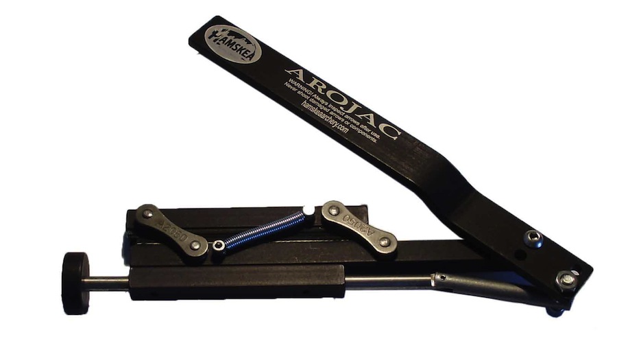 Für besonders hartnäckig festsitzende Pfeile – beispielsweise auch solche, die statt in der Scheibe im Holz des Scheibenständers, einem Baum oder einer Bretterwand stecken, gibt es von Hamskea den Arojac Pfeilzieher: