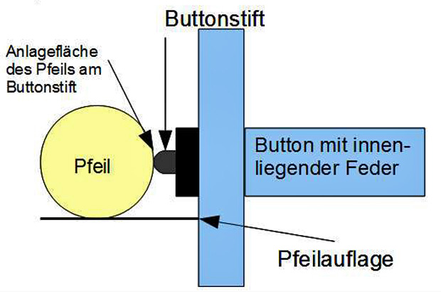 Wie schon im Artikel über den Button und dessen Funktionsweise ausgeführt, wirken starke Kräfte auf den Pfeil und den Button ein. Um nun diese Kräfte (Beschleunigungs- und Biegekräfte) zu kompensieren und auf ein Mindestmaß zu reduzieren, nutzt man zur Einstellung des Buttons den sogenannten Berger-Test.