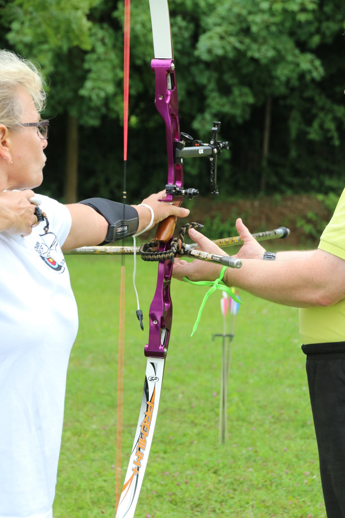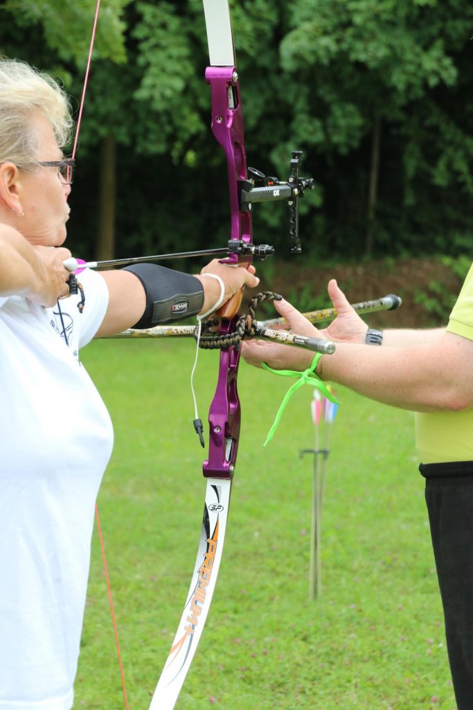 Bei dieser Übung soll und wird dem Schützen das Gefühl vermittelt, dass während des Abschusses die Bogenhand vollkommen entspannt bleiben kann. Dieses wird in einer Trainingseinheit ca. 10 Mal wiederholt. Danach legt der Schütze seine Bogen- oder Fingerschlinge wieder an und führt seine weiteren Schüsse mit der Unterstützung des Trainers wie oben beschrieben durch. Der Schütze erkennt hierbei sehr schnell, dass er seiner Bogenschlinge im geschlossenen Zustand „vertrauen“ kann und es nicht notwendig ist, den Bogen festzuhalten.