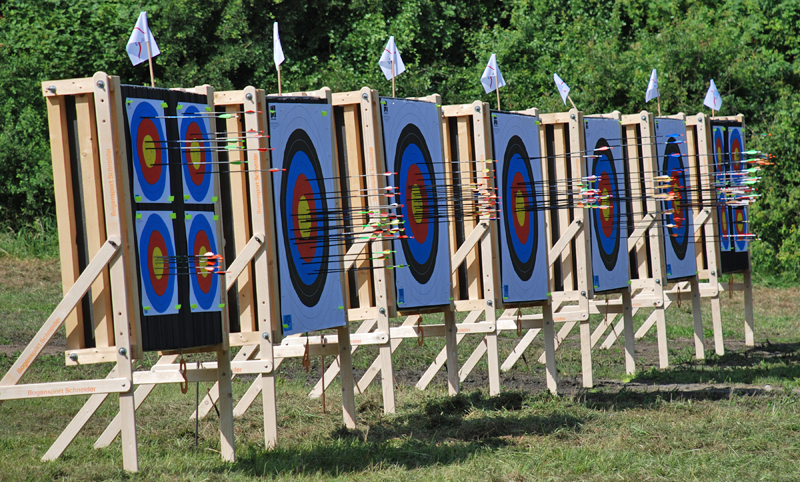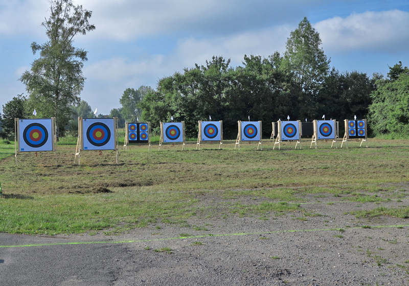 So bestand die Schießlinie für die Schützen, die bis auf 30 m Entfernung schossen, aus Schotter. Die Schützen, die auf weitere Entfernungen antraten, standen im Gegensatz dazu auf Gras. Zwar war die Wiese frisch gemäht, doch der üppige Rasenschnitt war leider nicht weggeräumt. Nicht gut für Heuschnupfengeplagte und auch das Pfeilewiederfinden wurde dadurch nicht unbedingt leichter.