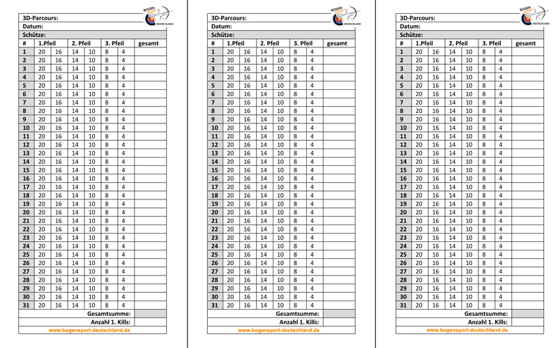 3D-Parcours-Schießzettel zum kostenlosen Download