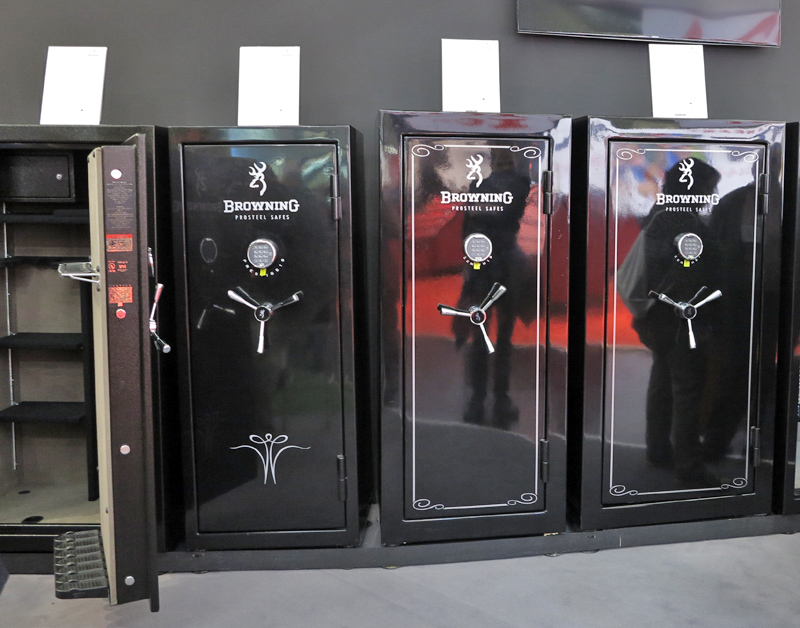 Auf Hochglanz polierte Waffentresore von der Firma Browning.