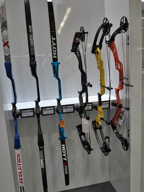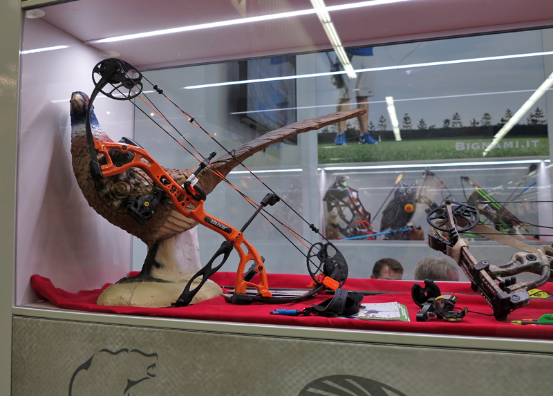 Am Stand von Bignami konnten wir einige Neuheiten in Augenschein und in die Hand nehmen. Den einen oder anderen Bogen werden wir sicherlich kurzfristig in unser Angebot aufnehmen. Die Hersteller haben gerade im Compoundbereich ihre Farbpalette deutlich erweitert. Neben den Standardfarben schwarz und camo werden jetzt auch vermehrt lebhaftere Farben angeboten. Im Bild oben ein Compoundbogen von Bear genau in „meinen“ Farben: Orange mit schwarz und passenden Kabeln und Sehne.