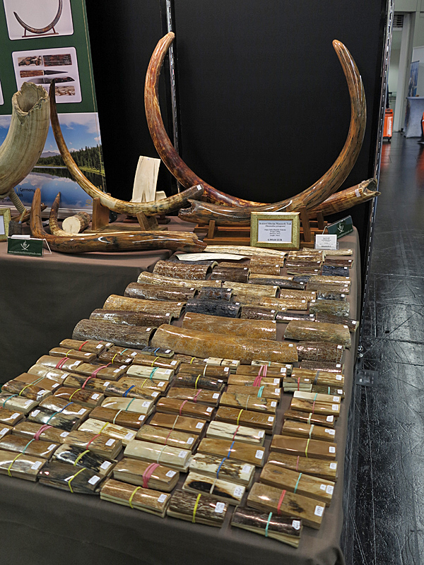 Angebot eines Elfenbein-Händlers. Und bevor es jetzt laute Schreie der Entrüstung von Tierschützern gibt: Es handelt sich ausschließlich um prähistorisches Mammut-Elfenbein. Ein wunderschönes, vielfältiges Material, u.a. für Messergriffe.