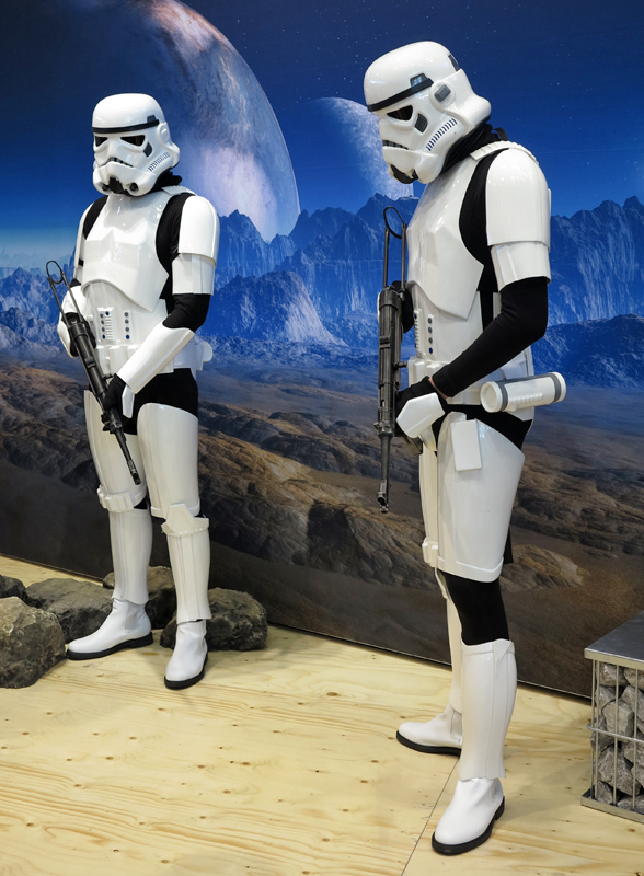 Und zum Schluss noch zwei Krieger aus der Zukunft mit Waffen von heute. Mit den beiden Sturmtrupplern konnte man sich – selbst entsprechend bewaffnet – fotografieren lassen.