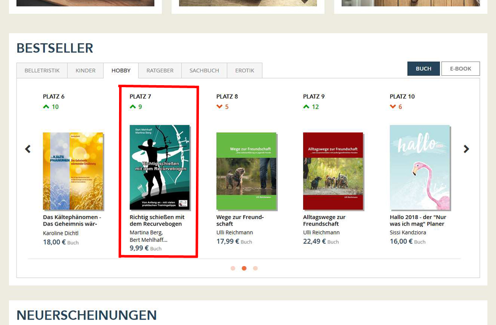 Unser Buch „Richtig schießen mit dem Recurvebogen“ (*) klettert auch in der Bestseller-Liste von Books on Demand stetig weiter in Richtung Spitzenplatz: