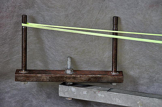 Endlossehne: Eine Art des Sehnenbaus, bei dem die Sehne aus einem einzigen Strang hergestellt wird. Dabei wird der Strang mehrfach auf einem speziellen Sehnengalgen um vier Stifte gewickelt. Anschließend werden die Sehnenaugen/Sehnenöhrchen gewickelt. Unser E-Book „Sehnenbau und Befiederung“ (*) zeigt Ihnen ausführlich, wie man eine Endlossehne selber baut.