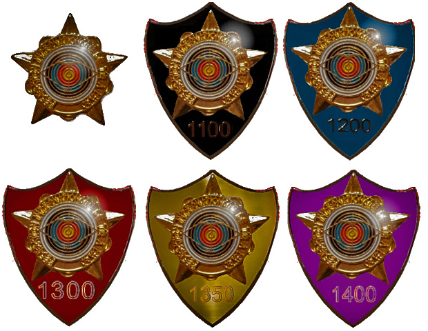 FITA-Stern / WA-Stern: Es gibt insgesamt fünf verschiedene Auszeichnungen für ein geschossenes Ergebnis. Es gibt FITA-Sterne für folgende Schießleistungen. Den 1100er , den 1200er, den 1300er, den 1350er und schließlich den 1400er Stern.