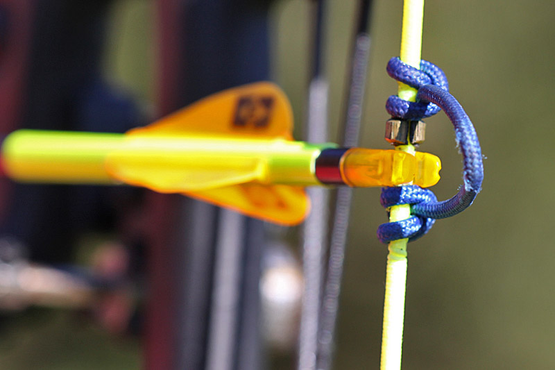 Loop: Sehnenschlaufe. Einsatz bei Compoundbögen mit Zangenrelease. Ermöglicht einen festen und sicheren Sitz der Nocke auf der Sehne.