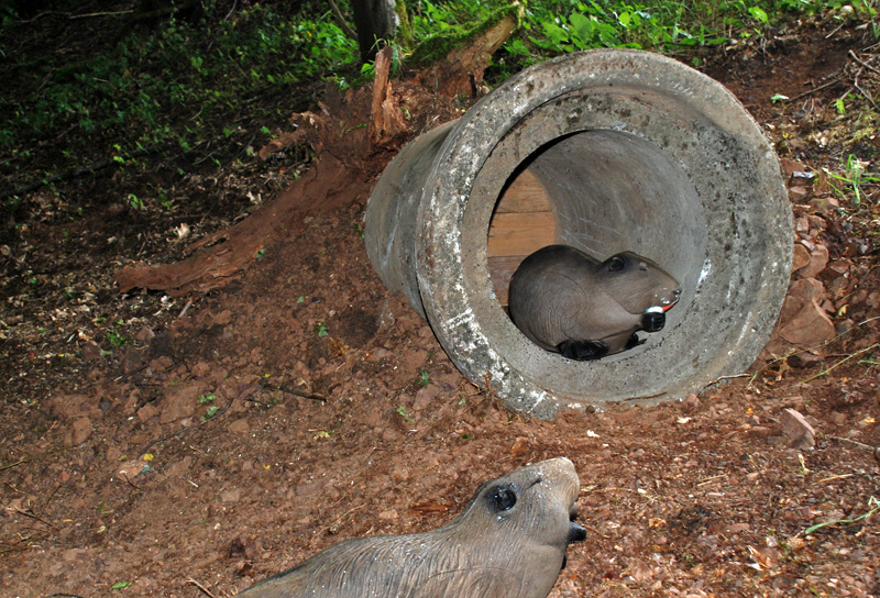 Nutrias in einem Abflussrohr – Vorsicht, Pfeilbruchgefahr!