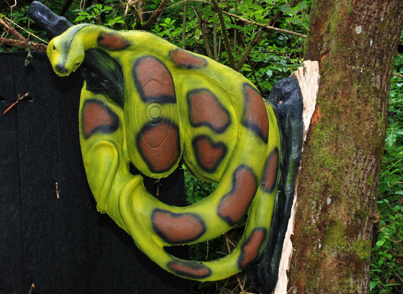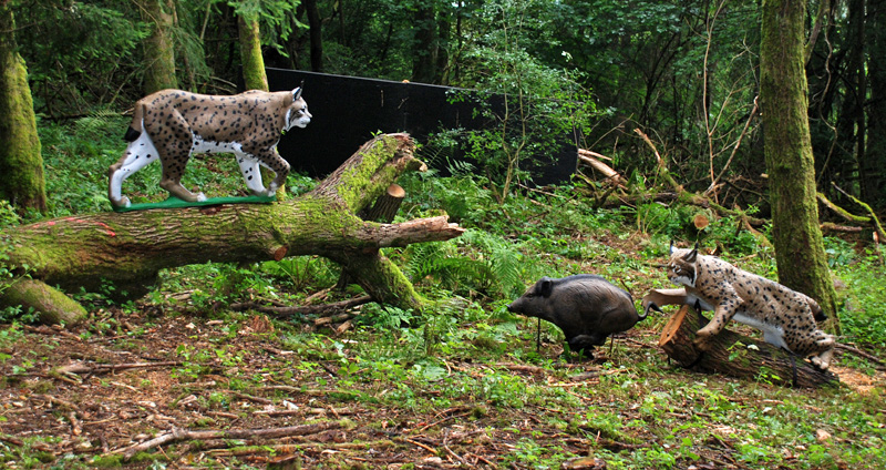 33 Stationen mit sicherlich über 120 Tieren warten auf begeisterte Bogenschützen. Nirgends steht nur ein einzelnes Ziel. Immer sind es fantasievoll arrangierte Tiergruppen, die wunderschön anzuschauen sind: Dachse schauen aus ihrem Bau, ein Murmeltier steckt in einer Mülltonne, ein Krokodil und ein Geier teilen sich ein erlegtes Wildschwein, ein Wespenschwarm ruht sich auf Bäumen aus, eine Elster nutzt einen Bison als „Parkplatz“ und und und…