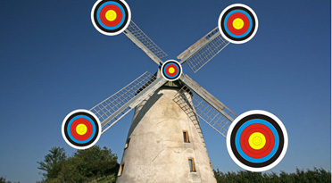 Um ein wenig Abwechslung in den „Bogenschützen-Alltag“ zu bringen, haben wir ein paar Scheibenauflagen mit Foto-Motiven entworfen. Klicken Sie auf den Link unter dem jeweiligen Motiv, um es in größerer Auflösung in einem neuen Fenster zu öffnen. Dann rechte Maustaste und abspeichern (oder gleich ausdrucken). Download Scheibenauflage Windmühle – hier klicken Download Scheibenauflage Kreuzspinne – hier klicken Download Scheibenauflage Oldtimer – hier klicken Download Scheibenauflage Schießbude – hier klicken Die Auflösung reicht für qualitativ sehr gute Ausdrucke bis zu einem Format von etwa DIN A2. Falls Ihr Drucker nur DIN A4 kann: mit fast jedem Bildbearbeitungsprogramm lässt sich das Motiv auf mehrere Blätter verteilen. Dann einfach zusammenkleben und schon haben Sie eine große Scheibenauflage. Damit die ausgedruckten Scheiben nicht gleich