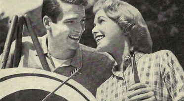 Dieses Reklamemotiv für Colgate-Zahncreme zeigt zwei Bogenschützen, die sich – natürlich mit strahlend weißen Zähnen – hinter einer Bogenzielscheibe stehend anstrahlen. Sie hält dabei einen Langbogen in der linken Hand. Der ins Bild ragende Pfeil scheint ziemlich mittig in der Scheibe zu stecken. Ob das Pärchen dabei über den letzten Schuß diskutiert, wage ich doch stark zu bezweifeln. 😉 Colgate ist ja auch heute noch eine bekannte Zahnpflegemarke. Seit 1908 verkauft das Unternehmen Zahncreme. Die hier vorgestellte Anzeige aus einer Zeitschrift stammt wahrscheinlich aus den 1950er Jahren. Mehr „Reklame mit Bogensport-Motiven“ Martina BergMartina Berg ist Chefin von Bogensport Deutschland. Sie schießt intuitiv mit einem Hybridbogen, ist DFBV-Trainerin und Lippische Meisterin mit dem traditionellen Bogen. Als engagierte Händlerin kennt sie sich