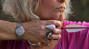 Heute kommen wir zu einem der häufigsten Fehlerquellen im Bewegungsablauf eines Bogenschützen: dem Lösen. Denn nur durch ein sauberes und fehlerfreies Lösen der Sehne lassen sich gute bis sehr gute Ergebnisse erzielen. Auch werden die einzelnen Pfeilgruppierungen deutlich enger zusammen liegen als vorher. Der Sehne muss durch ein totales Entspannen der Zugfinger die Möglichkeit gegeben werden, die Zugfinger während des Lösevorgangs geradewegs aus dem Weg zu drücken. Daraus ergibt sich, dass die Finger während des Lösens und des Nachhaltens die gleiche Position einnehmen, wie sie auf der Sehne platziert waren. Der Bogenschütze darf das Lösen der Sehne nicht durch ein Drücken der Bogenhand in Richtung Scheibe oder durch einen Zug der Finger nach hinten auslösen. Das Ziehen in der Expansionsphase