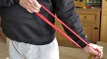 Der Bogenschütze sollte hierzu ein sehr leichtes Trainingsband in die Hand nehmen. Die Finger einhaken und am Anfang das Band nur ca. 20
