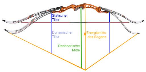 Ein korrekt eingestellter Tiller eines Recurvebogens sorgt dafür, dass sich der abgeschossene Pfeil nach dem entspannten Lösen (!) exakt durch die Energiemitte des Bogens bewegt.