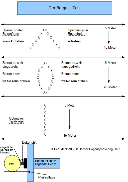 Wie schon im Artikel über den Button und dessen Funktionsweise ausgeführt, wirken starke Kräfte auf den Pfeil und den Button ein. Um nun diese Kräfte (Beschleunigungs- und Biegekräfte) zu kompensieren und auf ein Mindestmaß zu reduzieren, nutzt man zur Einstellung des Buttons den sogenannten Berger-Test.