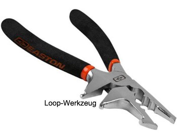 Beim Binden des Loops ist es wichtig, die Enden der Schnur zum Schluß zu verschweißen (mit einem heißen Feuerzeug oder besser einem Bunsenbrenner). Außerdem sollte das Loop mit einer Zange gespannt / gedehnt werden. Nur so ist sichergestellt, dass es die Schußbelastungen auch aushält. Dazu eignet sich die Nockpunktzange Easton Elite besonders gut.