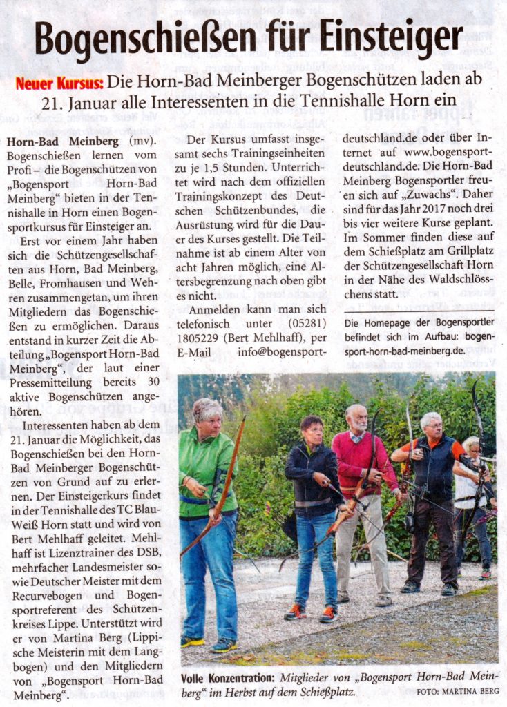 Die Lippische Landeszeitung brachte gestern einen Bericht über diesen und die folgenden Kurse, die wir, Bogensport Deutschland (*), in Zusammenarbeit mit den Schützen von Bogensport Horn-Bad Meinberg anbieten: