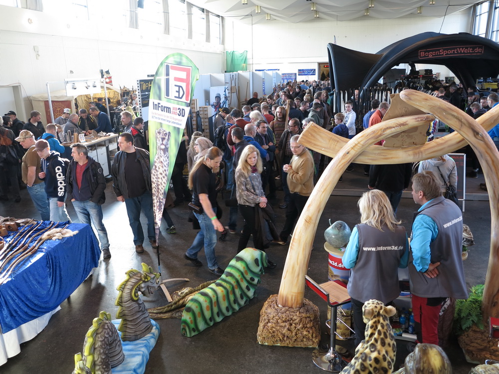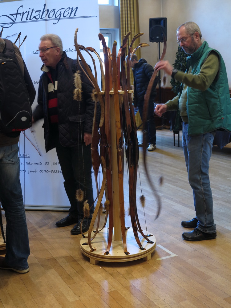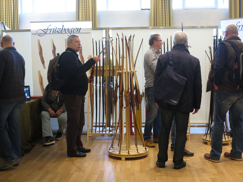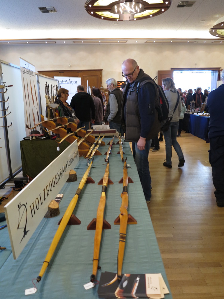 Schwerpunkt sind noch immer die traditionellen Bögen. Compoundbogenschützen konnten nur ein sehr kleines Angebot in Augenschein nehmen. Und auch Anbieter olympischer Recurvebögen musste man fast schon mit der Lupe suchen.