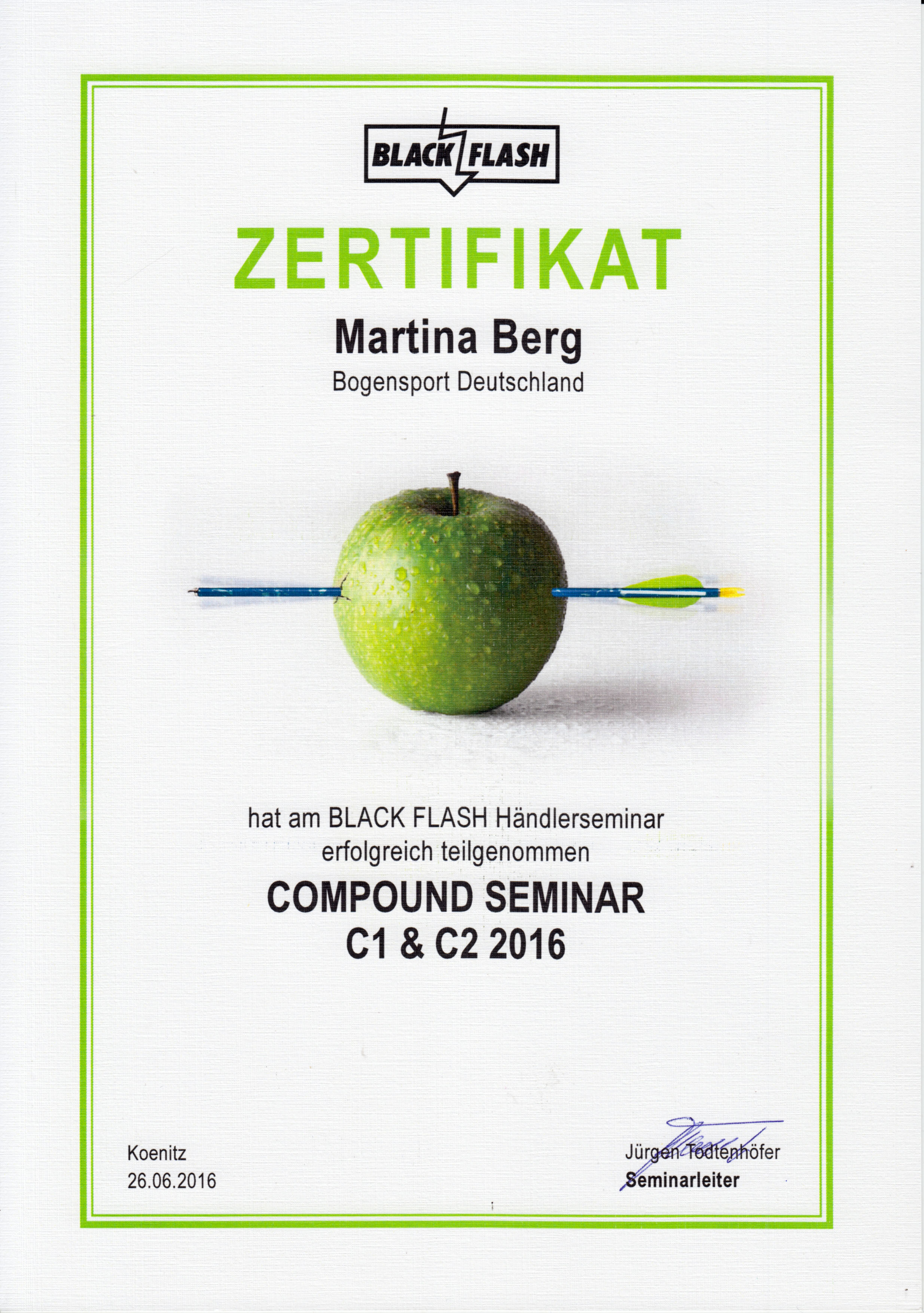 Es war ein wunderbar organisiertes und informatives Wochenende. Herzlichen Dank an das Team von BlackFlash Archery rund um Jürgen und Vera Todtenhöfer. Die Betreuung, Organisation und die Verpflegung waren einfach toll. Und trotz der extremen Hitze (ja, es war Hochsommer in Thüringen!) war es im Seminarraum gut auszuhalten! Wir haben uns sehr wohlgefühlt und kommen gern wieder!