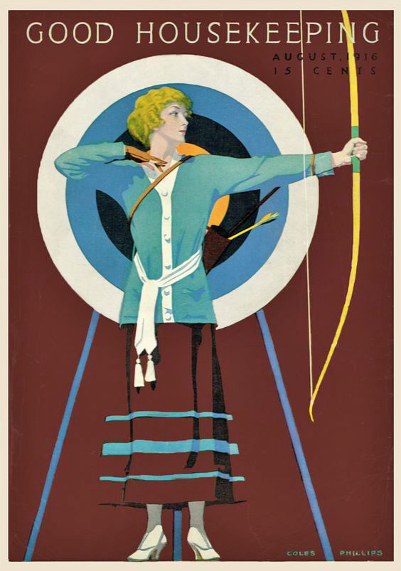 Die Ausgabe vom August 1916 zeigt auf dem Titel eine modisch gekleidete Bogenschützin mit einem Langbogen in der Nachhalteposition: