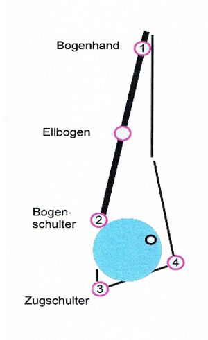 • Die Bogenschulter muss stabil gehalten werden und bleibt tief positioniert.