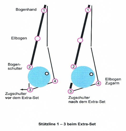 Im nächsten Bewegungsablauf wird die Zugschulter in Richtung der Stützlinie 1-3 bewegt. Diese Bewegung wird als Extra-Set bezeichnet.