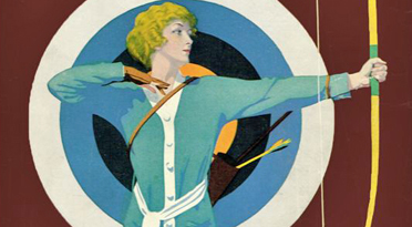 „Good Housekeeping“ (sinngemäß übersetzt: Gute Hauswirtschaft) ist ein US-amerikanisches Frauenmagazin, das auch heute noch in Großbritannien und den Vereinigten Staaten erscheint. Die Ausgabe vom August 1916 zeigt auf dem Titel eine modisch gekleidete Bogenschützin mit einem Langbogen in der Nachhalteposition: Sieht doch ganz gekonnt aus, oder? Nicht gerade sportliche Kleidung (man beachte vor allem die hochhackigen Schuhe) aber wohl zeitgemäß. Die Dame trägt auch einen Schießhandschuh, allerdings keinen Armschutz. Den wohl etwas zu weiten Jackenärmel hält sie aber mit einem Band zusammen. Die Handhaltung der Zughand ist auch etwas merkwürdig und die Fußstellung nicht wirklich parallel. Sonst habe ich aber nichts weiter zu meckern. Was nun Bogenschießen mit Haushaltsführung zu tun hat, kann ich leider nicht wirklich erklären. Aber vielleicht