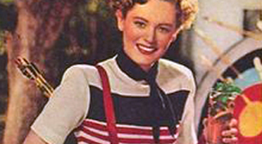 Hier wirbt die kanadisch-amerikanische Schauspielerin Alexis Smith (1924-1993) für Lipton Tea. Sie trägt dabei einen Armschutz, einen Schießhandschuh und einen Rückenköcher mit drei Pfeilen. Im Hintergund eine Zielscheibe mit der typischen Scheibenauflage für das Bogenschießen. Die Anzeige verweist auf Alexis‘ Rolle im Hollywood-Film „The Woman in White„ (deutscher Titel: Das Geheimnis der Frau in Weiß). Dieser Film wurde 1948 gedreht, daher ist anzunehmen, dass diese Werbeanzeige Ende der 1940er oder Anfang der 1950er Jahre erschienen ist. Mehr „Reklame mit Bogensport-Motiven“ Martina BergMartina Berg ist Chefin von Bogensport Deutschland. Sie schießt intuitiv mit einem Hybridbogen, ist DFBV-Trainerin und Lippische Meisterin mit dem traditionellen Bogen. Als engagierte Händlerin kennt sie sich auch mit Compound- und Recurvebögen aus. Zusammen mit Bert Mehlhaff schreibt