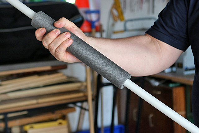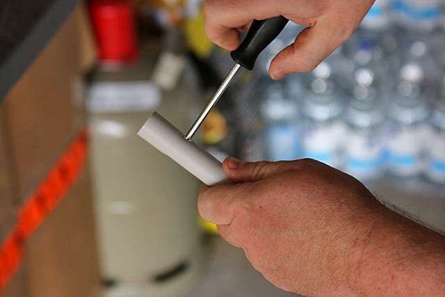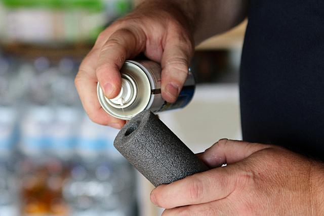 Von der Rohrisolierung ein Stück abschneiden (ca. 15 cm, dient als Griffstück). Dieses Stück über das Isolierrohr bis etwa zur Mitte des Rohres schieben. Ein wenig Ballistol oder Waffenöl in die Öffnung der Rohrisolierung gesprüht erhöht die Gleitfähigkeit und erleichtert dadurch diese Arbeit.