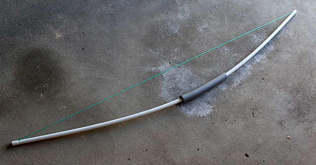 Ein Nullbogen ist ein Plastikrohr mit einer einfachen Schnur als Sehne. Das Zuggewicht ist gleich Null (daher auch der Name) und für den Anfang ideal, um ohne große körperliche Anstrengung die Bewegungsabläufe des Bogenschießens zu erlernen.