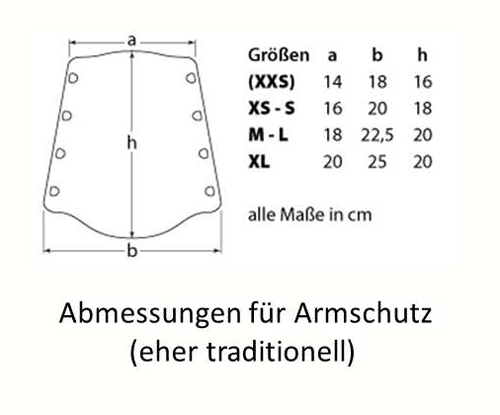 Die folgende Grafik bietet Ihnen einen groben Anhaltspunkt zur Größenbestimmung für traditionellen Armschutz aus Leder: