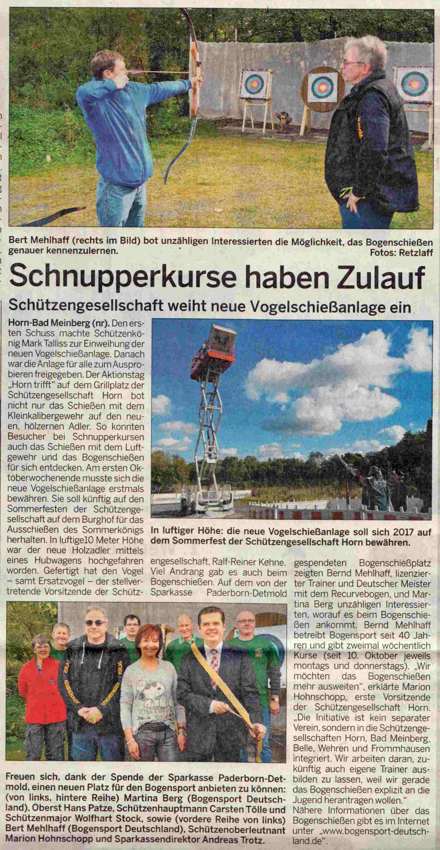 Jetzt hatte ich ja kaum noch damit gerechnet, aber in der Wochenendausgabe des Nordlippischen Anzeigers erschien dann doch noch ein recht ausführlicher Bericht über den vor 14 Tagen stattgefundenen Aktionstag der Schützengesellschaft Horn.